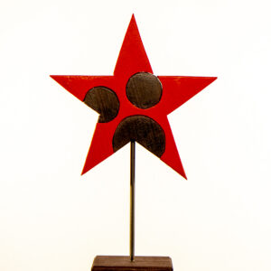 Der kleinste Stern der Reihe, 23 × 23 Zentimeter, eröffnet Raum für Interpretation. Peter Brauchle lädt die Betrachtenden geradezu ein, ins Philosophieren zu geraten: Roter Grund und schwarze Bollen – kehrt er das klassische Schwarzwaldsymbol bewusst um?