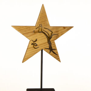 Der kleinste Stern der Serie, 23 × 23 Zentimeter groß, führt das Thema konsequent fort und ist selbstverständlich ebenfalls handgearbeitet. Laura Chaplin hat bereits im Schwarzwaldhaus der Sinne in Grafenhausen ausgestellt – eine Region, deren Wälder und Wurzeln ihre Bildwelt beeinflusst haben könnten.