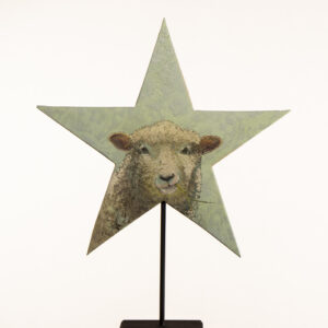 Auch der mittlere Stern, in sorgfältiger Handarbeit entstanden und 27 × 27 Zentimeter groß, trägt unverkennbar Wechlins Handschrift und führt das Motto weiter. Bei der Wahl seiner Motive ist der Künstler stets einem bestimmten Ausdruck auf der Spur – einem feinen Charakterzug, der in der Tierdarstellung sichtbar wird. Historisch wurden Schafe als kluge, nützliche Tiere geschätzt, weit mehr als ihr Ruf vermuten lässt. Wechlins Interpretation löst sich bewusst von der traditionellen Symbolik des Schafes an der Krippe. Er wendet den Blick in eine andere Richtung – dorthin, wo Tiere als eigenständige Wesen erscheinen, mit Würde und stillem Humor.