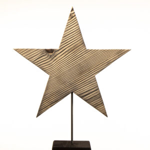 Mit einer eindrucksvollen Größe von 37 × 37 Zentimetern entfaltet der große Stern seine stille Präsenz. Ein Metallstab, fest verankert in einer schlichten Holzplatte, trägt ihn wie ein unsichtbarer Halt und lässt ihn ruhig im Raum stehen – als würde er selbst leuchten.